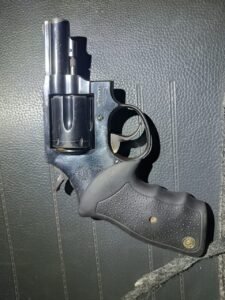 Na abordagem, os policiais apreenderam com ele um revólver calibre 38, com cinco munições, sendo duas deflagradas.