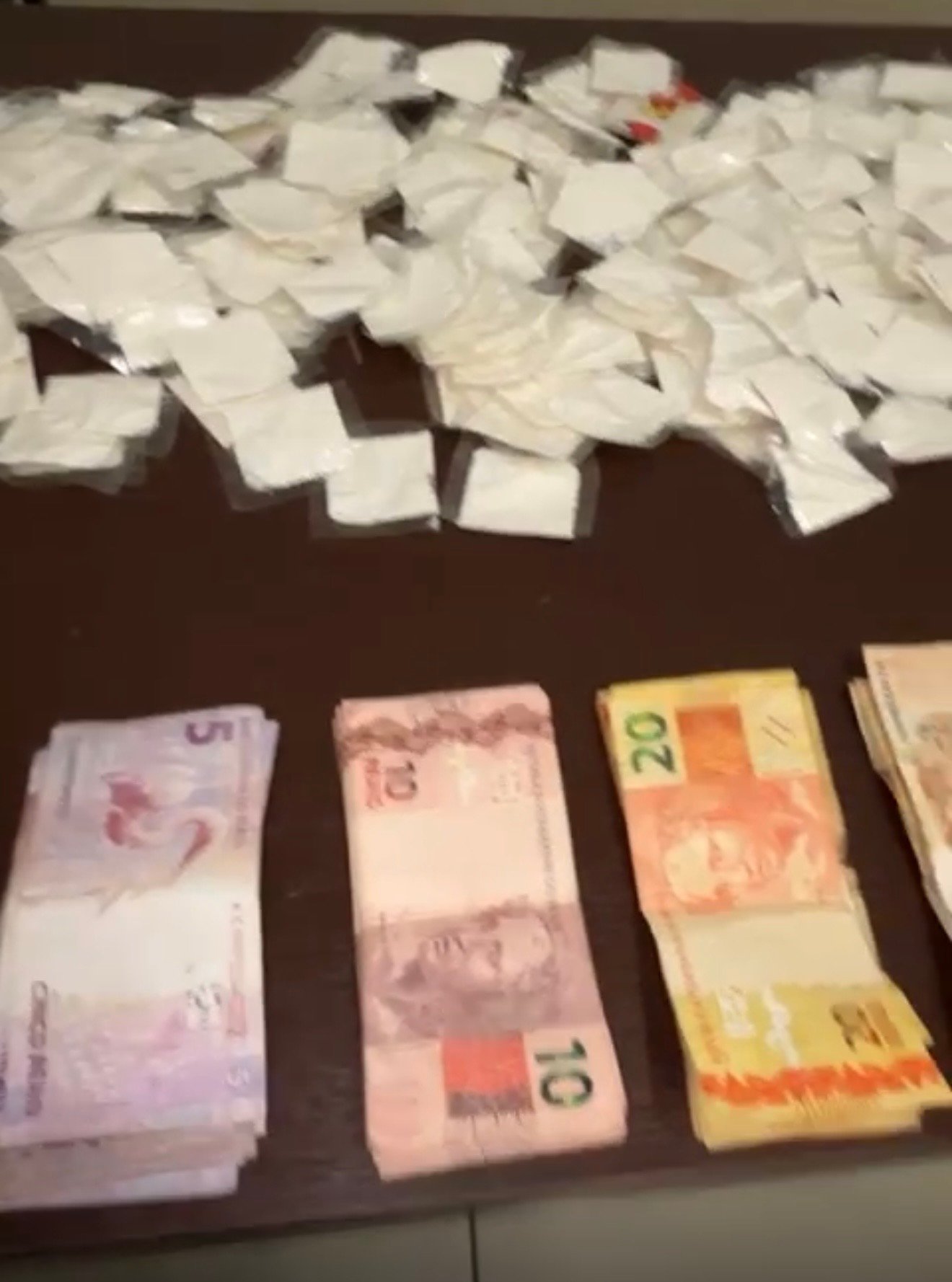 Durante a abordagem, o primeiro foi encontrado no interior de um veículo VW Fox branco. Com ele, os policiais localizaram uma pochete contendo R$ 1.307,00 em dinheiro e dois aparelhos celulares. O segundo abordado portava R$ 100,00 e um telefone celular. Os outros dois homens, também abordados, estavam com celulares, mas nenhum material ilícito foi encontrado inicialmente.