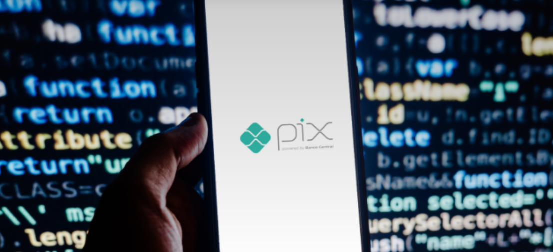 operação Cofre Digital contra lavagem de dinheiro #PraCegoVer: imagem mostra telas computadores preto com codigos coloridos e uma mão com celular e o logo do PIX, e ambiente que remete à investigação de crimes cibernéticos e movimentação financeira ilegal