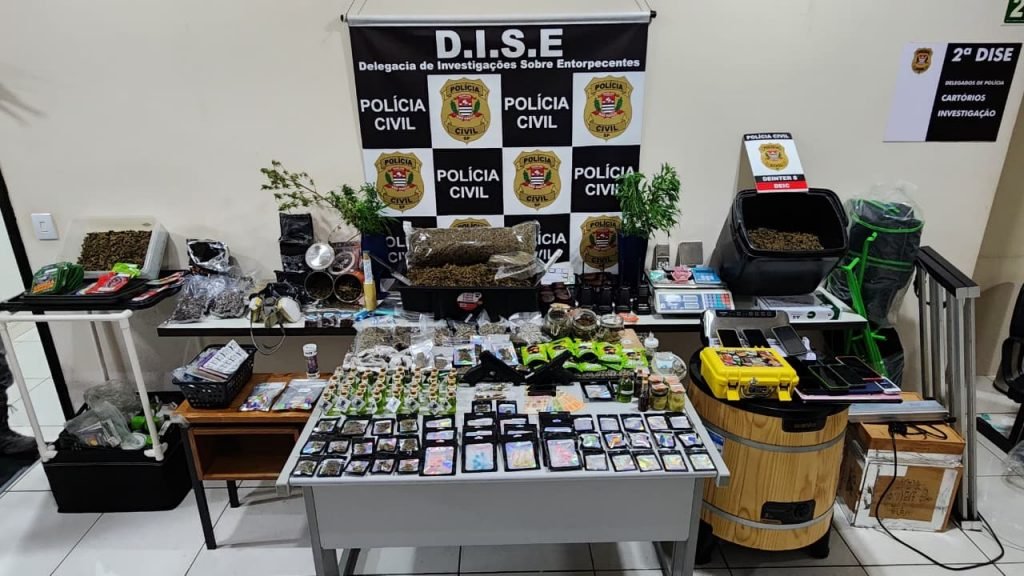 Na sequência, as equipes seguiram até a chácara alvo do mandado, onde localizaram a segunda envolvida. No imóvel, foi constatada uma estrutura montada para produção de maconha gourmet, com estufas e equipamentos destinados ao cultivo, preparo, refino e armazenamento da droga.