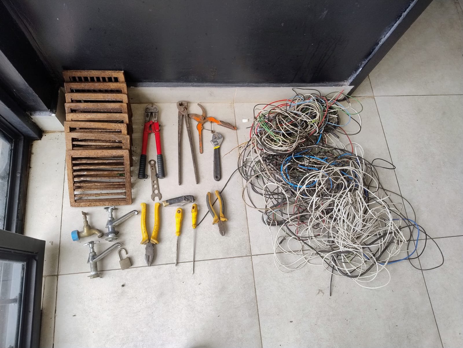 Os materiais reconhecidos foram devolvidos ao proprietário. Já os fios de cobre e o cadeado rompido foram apreendidos para investigação. O suspeito permaneceu à disposição da Justiça, aguardando audiência de custódia.