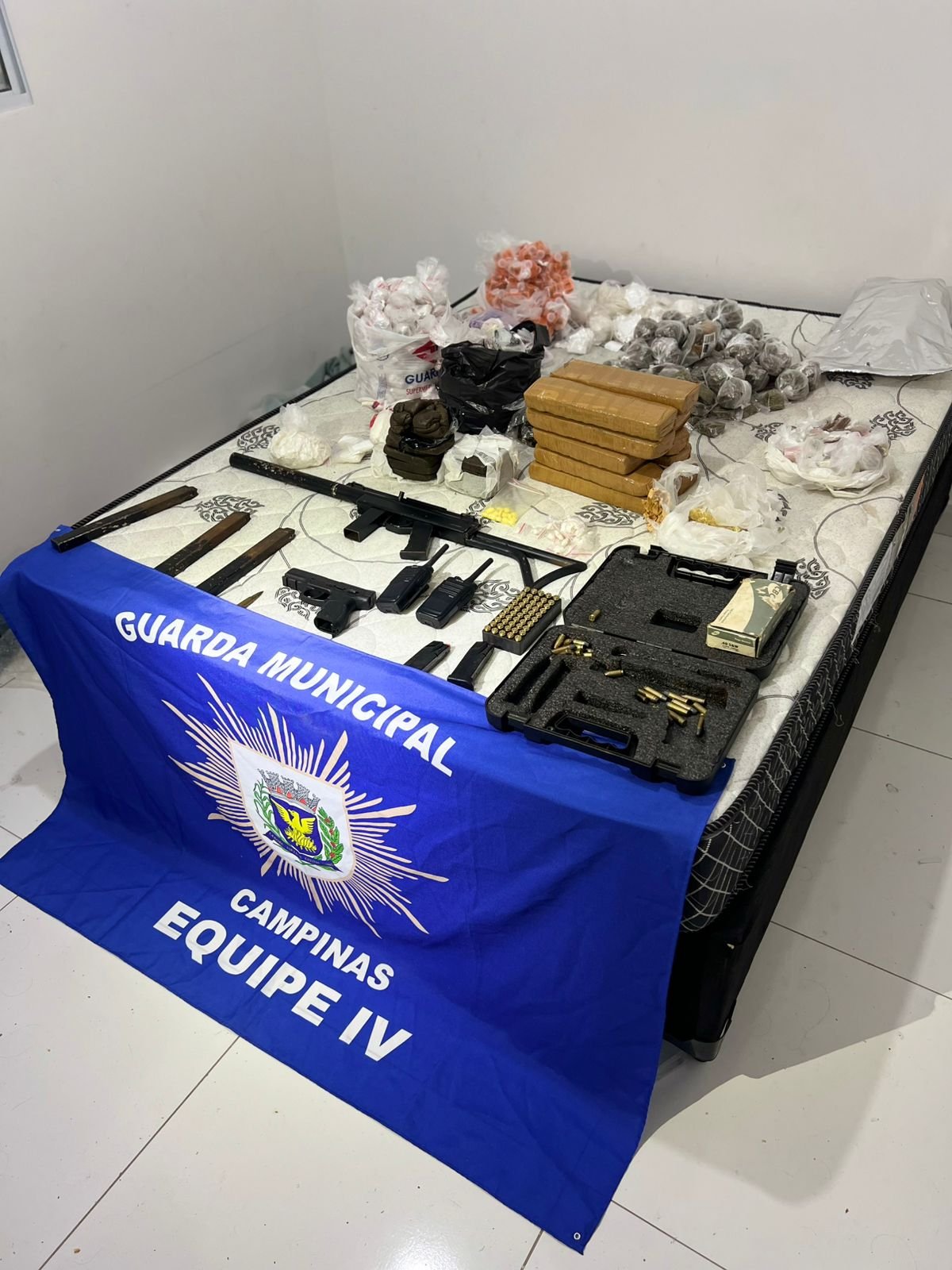 Na tarde desta sexta-feira (23), a Guarda Civil Municipal (GCM) apreendeu grande quantidade de drogas, armas e munições, no bairro Vila Padre Manoel de Nóbrega em Campinas (SP). A apreensão ocorreu durante patrulhamento preventivo pela Rua Andorinhas, área já conhecida pelas equipes por intensa atividade de tráfico de drogas.