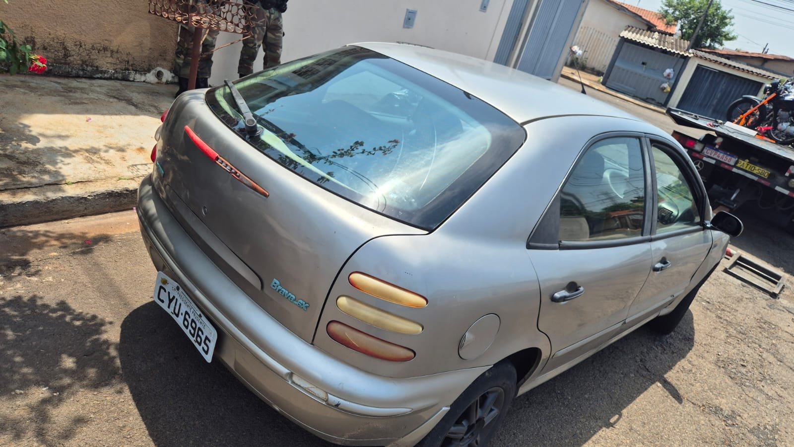 O veículo foi removido ao pátio municipal, e os bens foram restituídos à vítima. Os criminosos permaneceram à disposição da justiça.