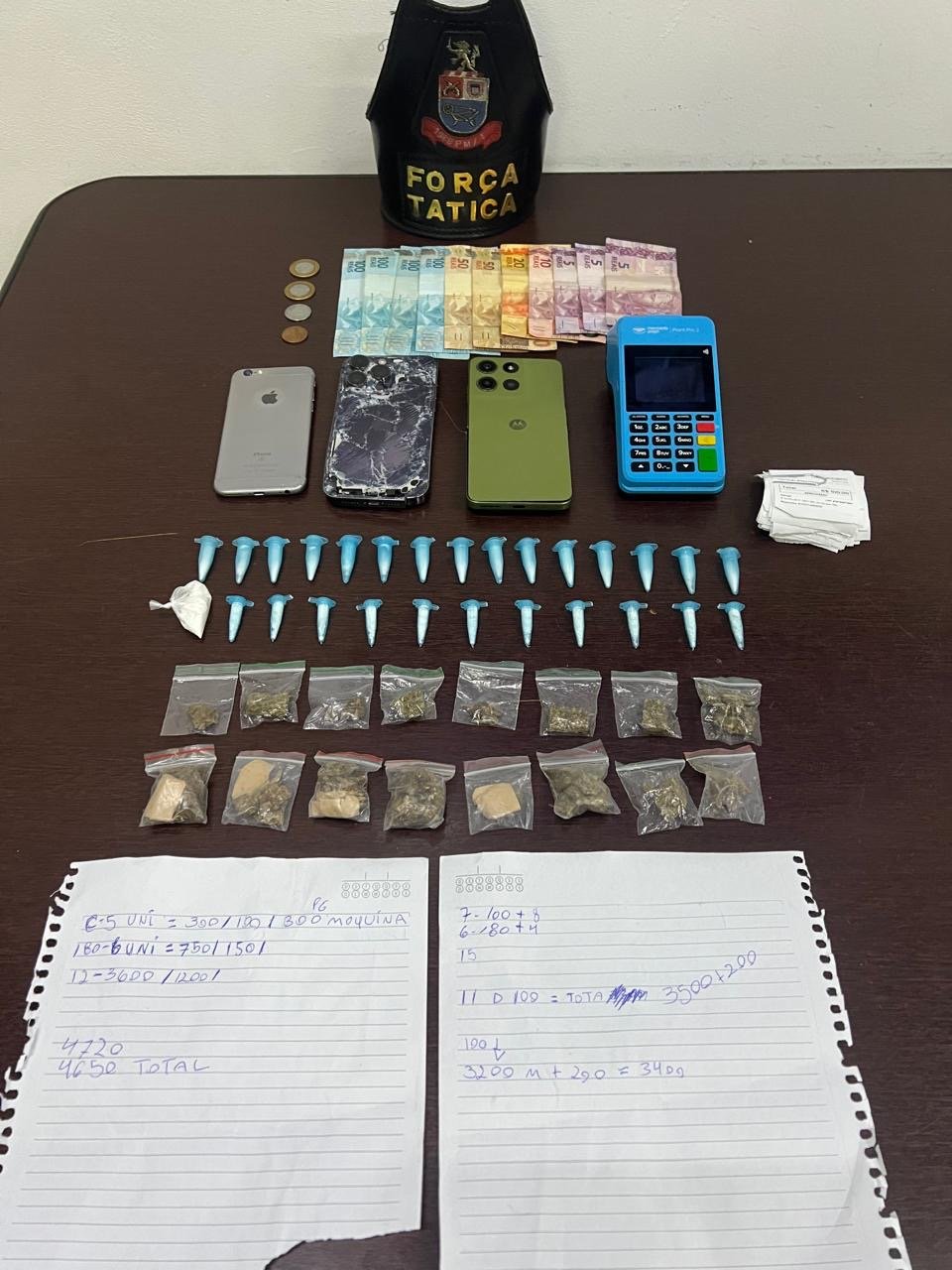 A equipe também encontrou duas folhas com anotações que indicavam a contabilidade do comércio ilegal, além de uma máquina de cartão de cor azul e diversos comprovantes, incluindo um pagamento no valor de R$ 101, compatível com o depoimento do usuário. Após a chegada da perícia, foi elaborado flagrante na Central de Polícia Judiciária. Os dois criminosos permaneceram presos, enquanto o comprador foi ouvido e liberado.