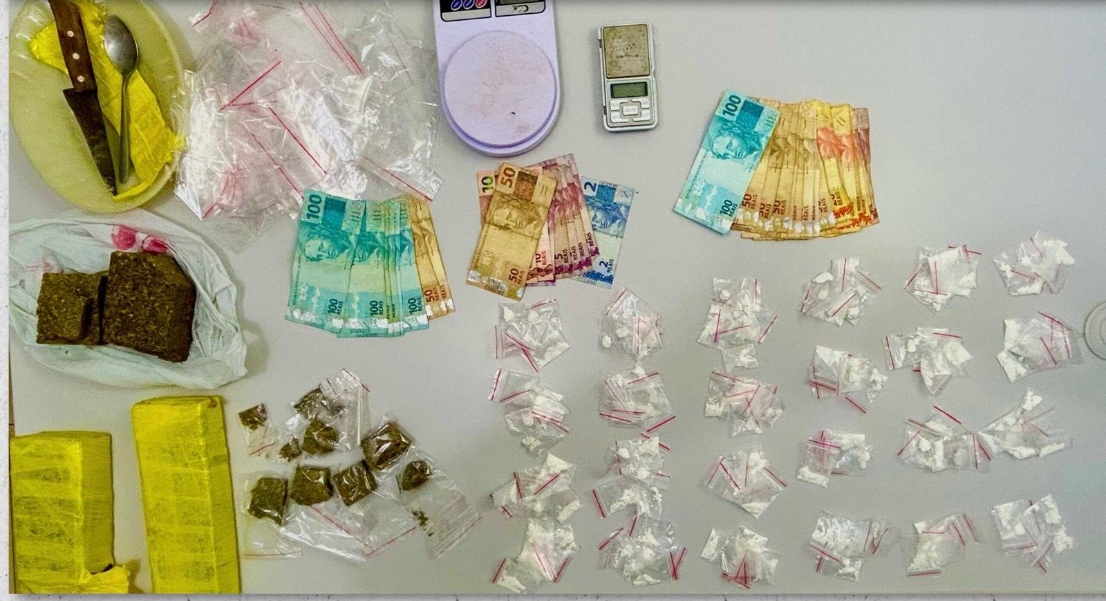 Com base nas informações, os militares seguiram até a residência do criminoso citado, onde encontraram porções de maconha e cocaína embaladas para venda, balanças de precisão e centenas de embalagens plásticas, além de R$ 830 em dinheiro. No mesmo local, outro homem foi surpreendido e confessou que atuava na distribuição das drogas.