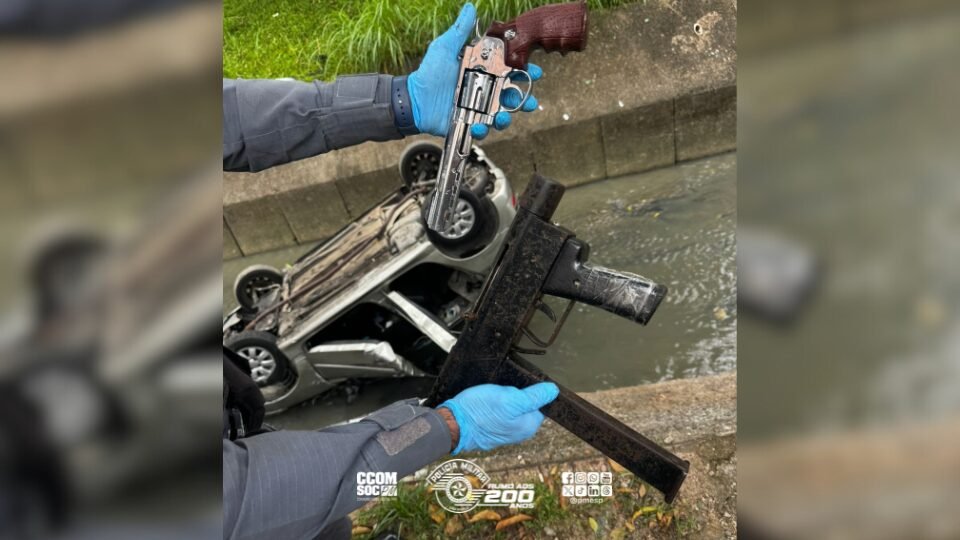 O condutor perdeu o controle e caiu em uma área de córrego. Dois ocupantes tentaram escapar a pé: um deles se rendeu de imediato; o outro correu armado, invadiu residências e disparou contra os policiais, que revidaram para conter a ameaça.