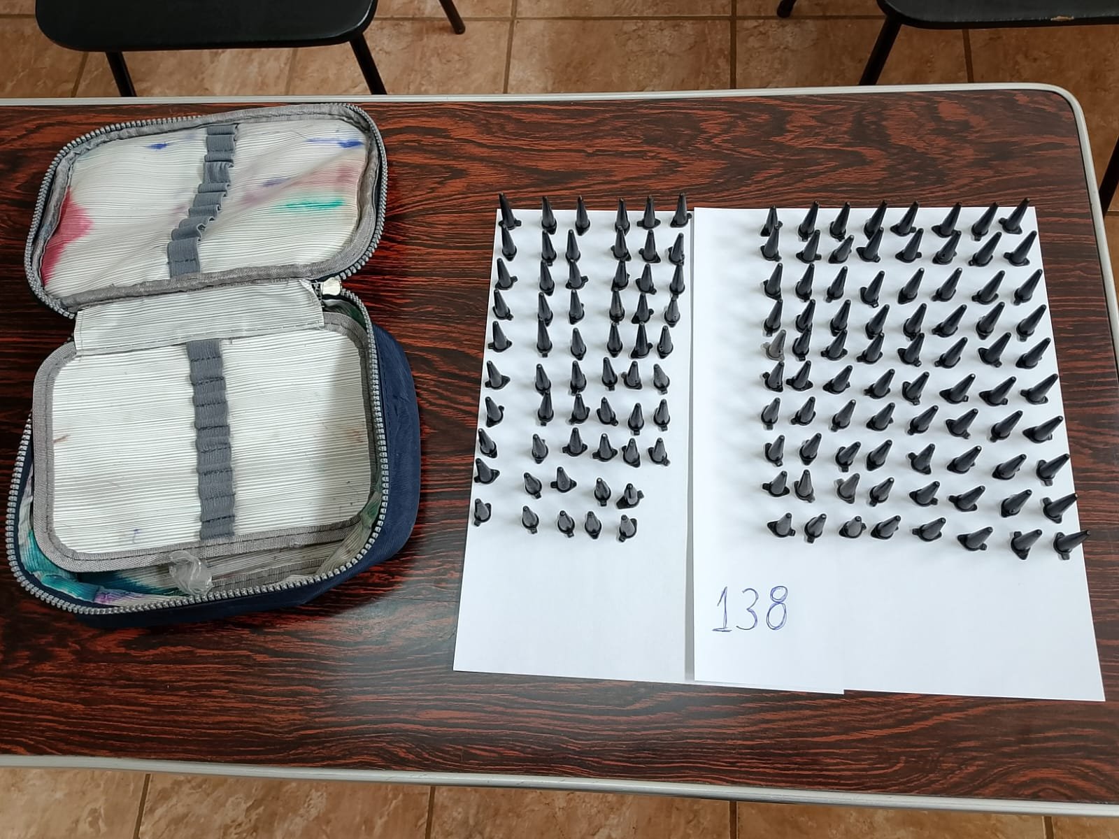 Em continuidade às buscas no imóvel, os policiais encontraram 138 eppendorfs contendo substância semelhante ao crack, armazenados no interior de um guarda-roupa. O material foi apreendido.