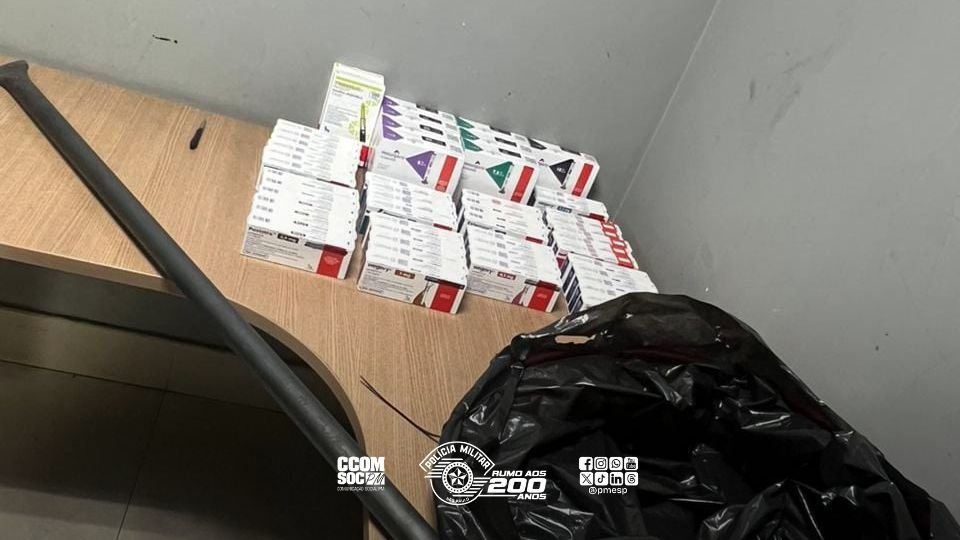 Durante a abordagem, os policiais encontraram no interior do carro um pé de cabra e diversos medicamentos furtados, entre eles Ozempic, Wegovy e Mounjaro, avaliados em aproximadamente R$ 80 mil.