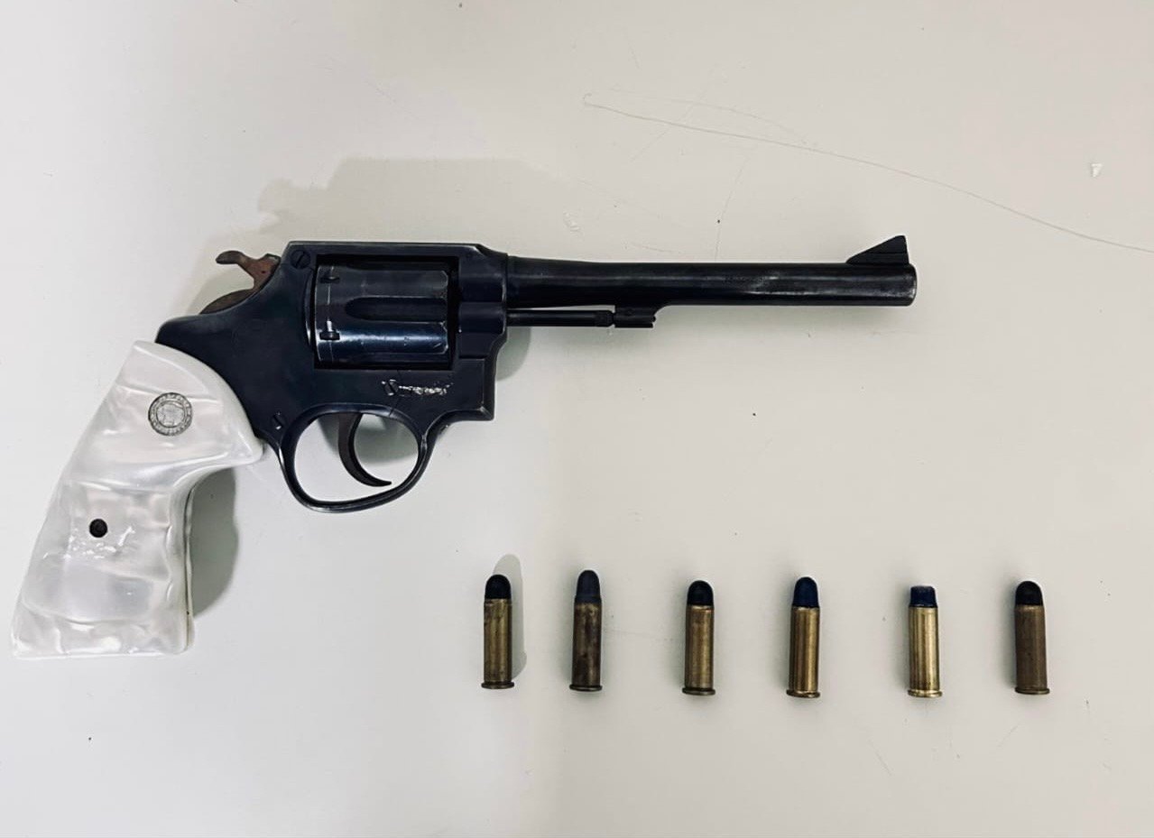 No local, os policiais abordaram o suspeito e realizaram busca pessoal, mas nada de ilícito foi encontrado inicialmente. Durante vistoria nas dependências da borracharia e nos fundos do imóvel, entre pneus e peças de motocicletas, foi localizado um revólver calibre .38 com numeração suprimida, carregado com seis munições.