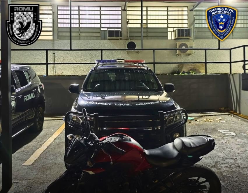 A ação ocorreu após informações repassadas pelo Centro de Segurança e Inteligência (CSI). Com base nos dados, os agentes localizaram uma motocicleta roubada que circulava pela região. O veículo havia sido subtraído na cidade de Taubaté.