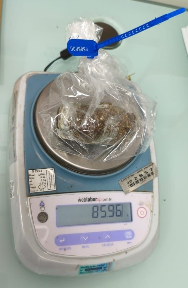 Ao passar pelo escâner corporal, a visitante apresentou imagem suspeita na região íntima. Diante da constatação, ela foi questionada e, de forma espontânea, entregou um invólucro contendo substância esverdeada com características de maconha.